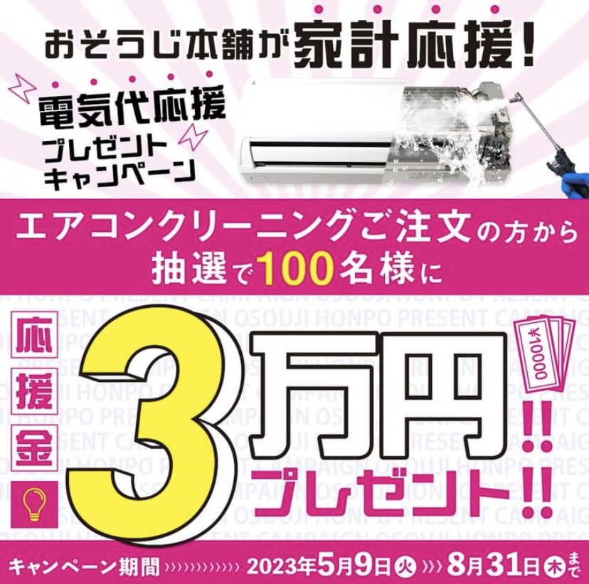 期間中、【必ずクーポン使用】とお伝え頂くと、エアコン、キッチン、水回りメニューを11,000円(税込)以上ご注文頂いたお客様は