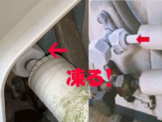 ガスが漏れて凍っていますね。