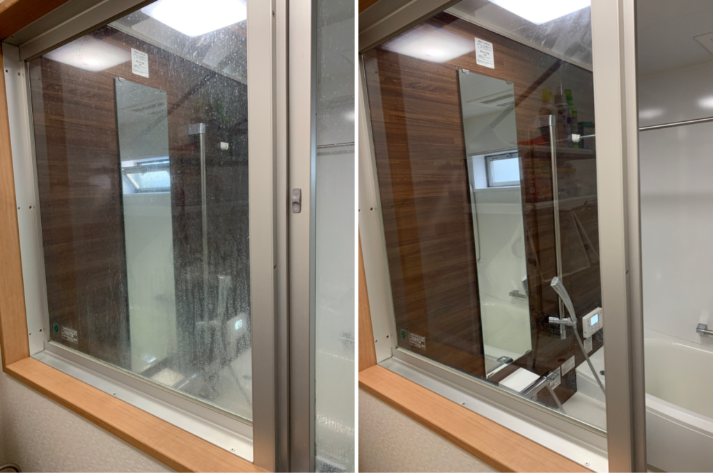 お風呂の扉ガラスのモヤモヤを落とす。