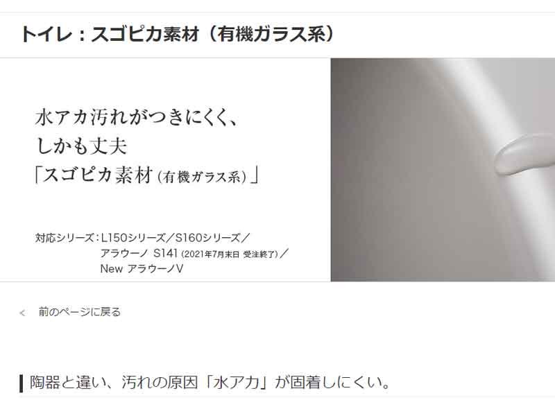 何も加工されていない陶磁器と比べると格段に汚れ落ちは良すが、TOTO、LIXILのように陶器の表面に特殊加工をしている2メーカーと比べると汚れ落ちなどは劣ります。
