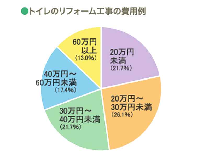 トイレの全面リフォームの相場費用は大体20〜30万円が1番多いようですが、排水管工事が必要の場合はプラスで約10万円程度かかるケースがあります。