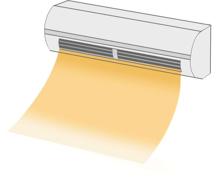 部屋の中に温度ムラができるとエアコンの冷暖房効率が下がります