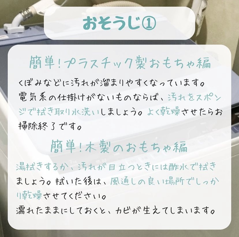 2023.10.03 お知らせ 知ってました?安全なおもちゃの洗い方 愛知県のハウスクリーニングのことなら、おそうじ本舗瀬戸中水野店にお任せください。 会社名 おそうじ本舗瀬戸中水野店 住所 〒489-0003 愛知県瀬戸市穴田町241 TEL 0120-383-037 営業時間 8:00~19:00(不定休) 業務内容 ハウスクリーニング全般 前の記事へ 次の記事へ
